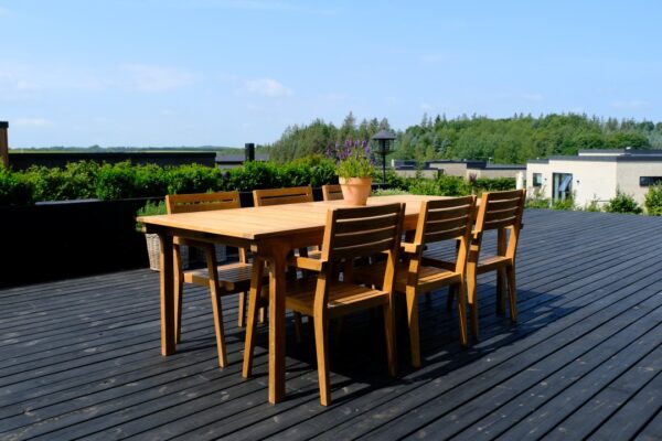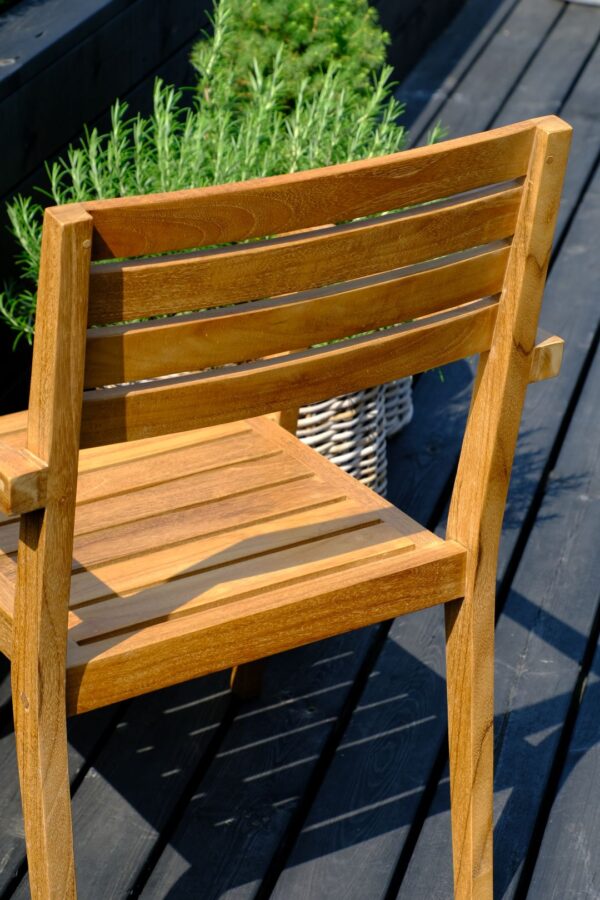 Teaktræ er omhyggeligt udvalgt for sin modstandsdygtighed i det nordiske klima. Inspireret af skibsindustrien, hvor teaktræ har været anvendt i generationer, har vi valgt teaktræ til vores serie af havemøbler produceret i træ. Vi anvender udelukkende bæredygtigt FLEGT-certificeret teaktræ, der stammer fra træets inderste og ældste del. Dets høje tæthed, hårdhed og olieholdighed gør det yderst modstandsdygtigt og ideelt til eksklusive havemøbler, der kombinerer kvalitet og lang holdbarhed.